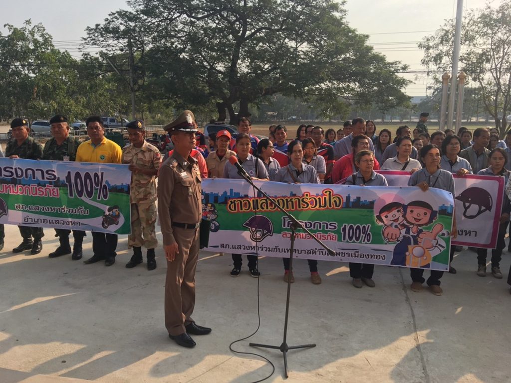 สถานีตำรวจแสวงหาดำเนินการ จัดกิจกรรม มาตราการสวมหมวกกันน็อค 100% ในเขตพื้นที่ สภ.แสวงหา ตามนโยบายของตำรวจภูธรภาค 1